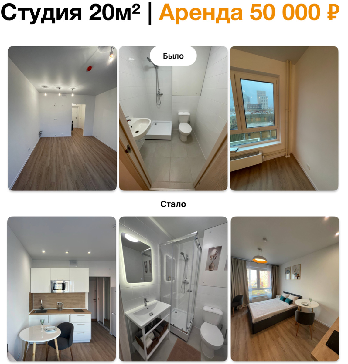Я сделал классные, светлые фотографии (это половина успеха) и выставил объявление. Результат превзошел ожидания: я сдал студию за 50 000 ₽ в месяц в первый же день. Более того, первый человек, пришедший на просмотр, снял её и живет там до сих пор.