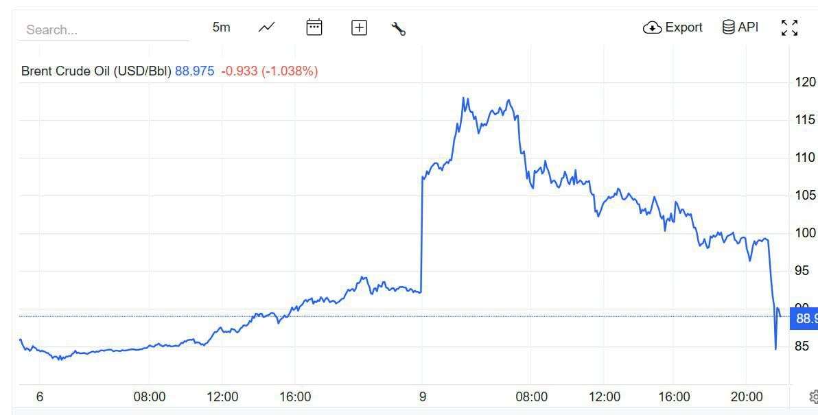 Цена на нефть Brent рухнула до 88 долларов после заявления Трампа, что война в Иране «почти закончена», что, видимо, рынок воспринял как