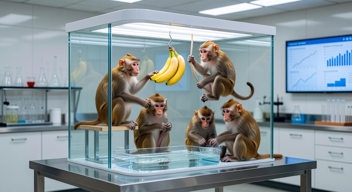 ΠΡ Π½Π°Π²Π΅ΡΠ½ΡΠΊΠ° ΡΠ»ΡΡΠ°Π»ΠΈ ΡΡΡ ΠΈΡΡΠΎΡΠΈΡ Π½Π° Π±ΠΈΠ·Π½Π΅Ρ-ΡΡΠ΅Π½ΠΈΠ½Π³Π°Ρ ΠΈΠ»ΠΈ ΡΠΈΡΠ°Π»ΠΈ Π² ΠΏΠΎΠΏΡΠ»ΡΡΠ½ΡΡ ΠΏΠ°Π±Π»ΠΈΠΊΠ°Ρ . Π£ΡΠ΅Π½ΡΠ΅ ΠΏΠΎΠΌΠ΅ΡΡΠΈΠ»ΠΈ Π² ΠΊΠ»Π΅ΡΠΊΡ ΠΏΡΡΡ ΠΎΠ±Π΅Π·ΡΡΠ½, ΠΏΠΎΡΡΠ°Π²ΠΈΠ»ΠΈ ΡΡΡΠ΅ΠΌΡΠ½ΠΊΡ ΠΈ ΠΏΠΎΠ»ΠΎΠΆΠΈΠ»ΠΈ Π½Π°Π²Π΅ΡΡ ΡΠ²ΡΠ·ΠΊΡ Π±Π°Π½Π°Π½ΠΎΠ². ΠΠ°ΠΊ ΡΠΎΠ»ΡΠΊΠΎ ΠΎΠ΄Π½Π° ΠΈΠ· ΠΌΠ°ΠΊΠ°ΠΊ ΠΏΡΡΠ°Π»Π°ΡΡ Π΄ΠΎΠ±ΡΠ°ΡΡΡΡ Π΄ΠΎ Π»Π°ΠΊΠΎΠΌΡΡΠ²Π°, Π²ΡΠ΅Ρ ΠΎΠΊΠ°ΡΡΠ²Π°Π»ΠΈ Π»Π΅Π΄ΡΠ½ΠΎΠΉ Π²ΠΎΠ΄ΠΎΠΉ. ΠΡΠΊΠΎΡΠ΅ ΠΆΠΈΠ²ΠΎΡΠ½ΡΠ΅ Π½Π°ΡΠ°Π»ΠΈ ΠΈΠ·Π±ΠΈΠ²Π°ΡΡ Π»ΡΠ±ΠΎΠ³ΠΎ ΡΠΌΠ΅Π»ΡΡΠ°ΠΊΠ°, ΡΠΈΡΠΊΠ½ΡΠ²ΡΠ΅Π³ΠΎ ΠΏΠΎΠ΄ΠΎΠΉΡΠΈ ΠΊ Π»Π΅ΡΡΠ½ΠΈΡΠ΅. ΠΠ°ΡΠ΅ΠΌ ΠΈΡΡΠ»Π΅Π΄ΠΎΠ²Π°ΡΠ΅Π»ΠΈ ΡΡΠ°Π»ΠΈ ΠΏΠΎ ΠΎΠ΄Π½ΠΎΠΉ Π·Π°ΠΌΠ΅Π½ΡΡΡ ΡΡΠ°ΡΡΡ ΠΎΠ±Π΅Π·ΡΡΠ½ Π½Π° Π½ΠΎΠ²ΡΡ . ΠΠΎΠ²ΠΈΡΠΊΠΈ ΠΏΡΡΠ°Π»ΠΈΡΡ Π΄ΠΎΡΡΠ°ΡΡ Π±Π°Π½Π°Π½, ΠΏΠΎΠ»ΡΡΠ°Π»ΠΈ ΡΡΠΌΠ°ΠΊΠΈ ΠΎΡ ΡΡΠ°ΡΠΎΠΆΠΈΠ»ΠΎΠ² ΠΈ Π±ΡΡΡΡΠΎ ΡΡΠ²Π°ΠΈΠ²Π°Π»ΠΈ ΠΏΡΠ°Π²ΠΈΠ»ΠΎ. Π ΠΈΡΠΎΠ³Π΅ Π² ΠΊΠ»Π΅ΡΠΊΠ΅ ΠΎΠΊΠ°Π·Π°Π»ΠΈΡΡ ΠΏΡΡΡ ΠΏΡΠΈΠΌΠ°ΡΠΎΠ², ΠΊΠΎΡΠΎΡΡΡ Π½ΠΈΠΊΠΎΠ³Π΄Π° Π½Π΅ ΠΏΠΎΠ»ΠΈΠ²Π°Π»ΠΈ Π²ΠΎΠ΄ΠΎΠΉ, Π½ΠΎ ΠΎΠ½ΠΈ ΠΏΡΠΎΠ΄ΠΎΠ»ΠΆΠ°Π»ΠΈ Π±ΠΈΡΡ ΠΊΠ°ΠΆΠ΄ΠΎΠ³ΠΎ, ΠΊΡΠΎ ΡΡΠ½ΡΠ»ΡΡ ΠΊ Π΅Π΄Π΅. ΠΠΎΡΠ°Π»Ρ ΡΡΠΎΠΉ ΠΏΡΠΈΡΡΠΈ ΠΎΠ±ΡΡΠ½ΠΎ ΡΠ²ΠΎΠ΄ΠΈΡΡΡ ΠΊ ΡΡΠ°Π·Π΅: Β«ΠΠ΄Π΅ΡΡ ΡΠ°ΠΊ Π·Π°Π²Π΅Π΄Π΅Π½ΠΎΒ». ΠΠΎ Π·Π°Π΄ΡΠΌΡΠ²Π°Π»ΠΈΡΡ Π»ΠΈ Π²Ρ, ΠΏΡΠΎΠ²ΠΎΠ΄ΠΈΠ»ΡΡ Π»ΠΈ ΡΡΠΎΡ ΡΠΊΡΠΏΠ΅ΡΠΈΠΌΠ΅Π½Ρ Π½Π° ΡΠ°ΠΌΠΎΠΌ Π΄Π΅Π»Π΅?