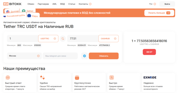 BitOkk входит в список сервисов, которые регулярно попадают в лучшие криптообменники в Москве благодаря удобному расположению и быстрому проведению операций.