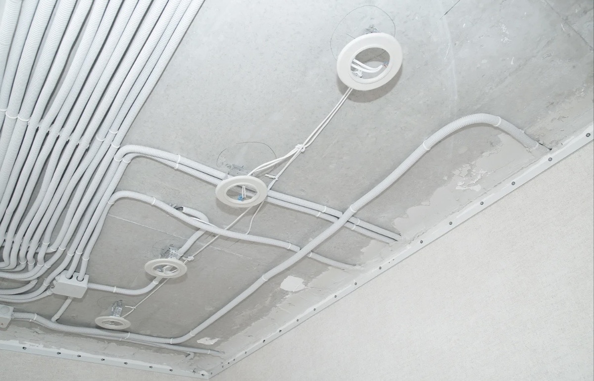 Почти все знакомые советовали одно и то же, что натяжные потолки это быстро, красиво, удобно проводить проводку. Казалось, это самое простое решение. Но чем больше мы изучали тему, тем больше понимали для себя мы такой вариант точно не выберем.