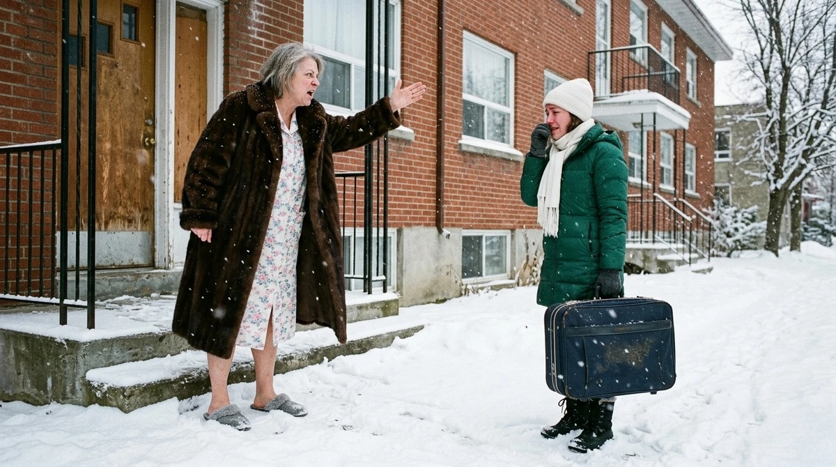 Я стояла на крыльце с чемоданом. Холод пробирал сквозь куртку. Дверь захлопнулась за спиной.