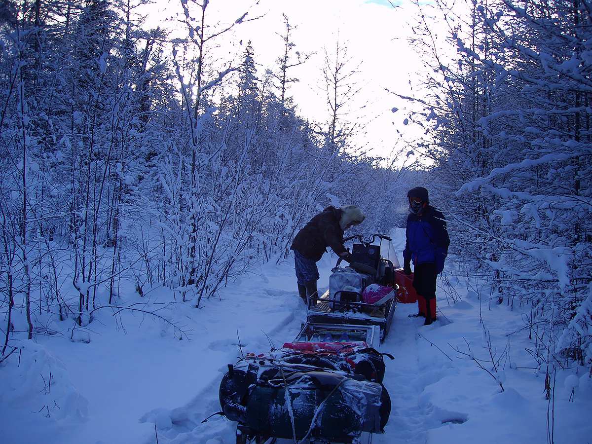 Под новый 2006 год бахнул вулкан Безымянный с выбросом облака пепла на 11 км. Это отличный повод отправится на поиски приключений на новогодние праздники, в самый «приключенческий» район Камчатки – Ключевскую группу вулканов. В надежде что-нибудь интересное увидеть и сфотографировать. Снегоходами нас двоих забросили на край Толбачинского плато. По плато мы прошли полдня на лыжах в сторону вулкана Зимина. Поставили палатку, и на этом все. Ночью пришел сильнейший циклон. Три дня сидели в палатке, пурговали. Ветер был такой силы, что страшно было ходить в туалет. Все бы ничего, но возникла неожиданная проблема. Палатка оказалась коротковата. Артем раздобыл приличную палатку, но длина ее была толи 180 толи 190 см. В квартире поставили, померили, вроде нормально помещаемся. Но в походе, неровности при установки и вещи в палатке забрали немного пространства, а когда ее начало присыпать снегом, стало совсем тесно. Невозможность в лежачем положении вытянуть ноги оказалось злой пыткой. По оч