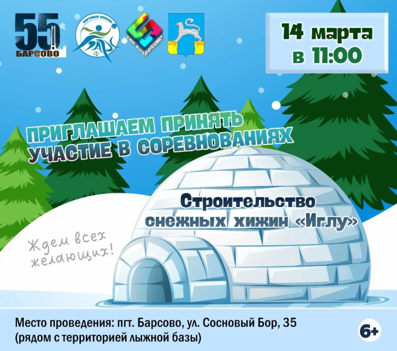 В Барсово (Сургутский район, ХМАО) пройдут семейные состязания по строительству снежных жилищ иглу. Об этом рассказали «Вестнику» в администрации поселения. В субботу, 14 марта, в 11:00 часов, жителей поселения ждут рядом с территорией лыжной базы (6+). Им предстоит разделиться на команды по шесть человек и за три часа построить снежные иглу. По мнению организаторов, это привлечет людей к активному отдыху и здоровому образу жизни, улучшит их навыки выживания зимой в лесу. – Приглашаем всех на увлекательное семейное состязание! Это отличная возможность провести выходной вместе всей семьей, проявить креативность и проверить свою ловкость, – говорится в сообщении. До 14 марта жюри принимает заявки. На соревнования взрослые участники должны взять с собой такие документы, как паспорт, водительское удостоверение или военный билет; полис страхования от несчастных случаев. Победителей наградят дипломами и кубками. Отметим, иглу – это вариант традиционного жилища эскимосов, представляющий собой