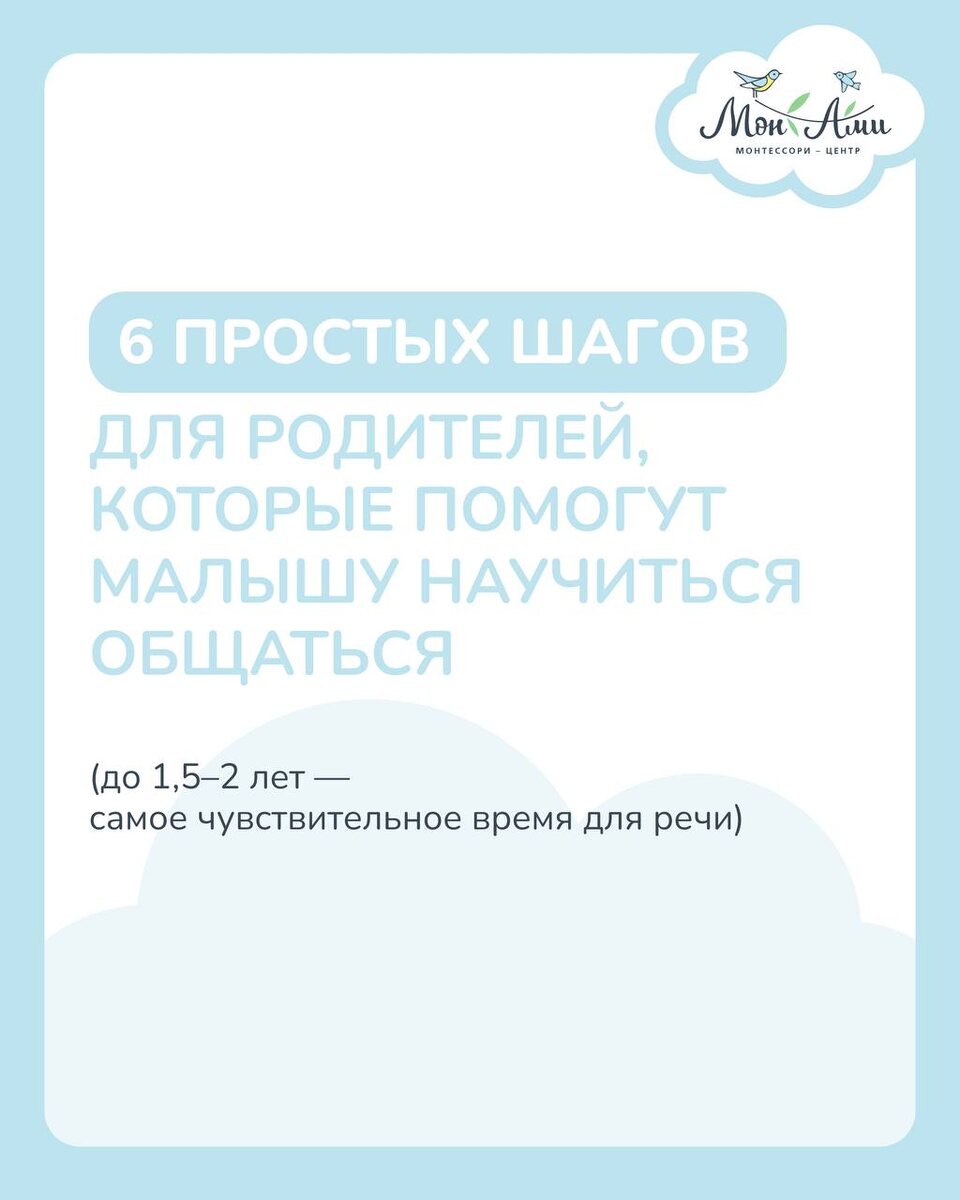 В нидо-классе мы особенно внимательно относимся к тому, как взрослый разговаривает с ребёнком. Потому что речь — это не просто слова. Сегодня в подборке для малышей советы по развитию речи дома! И всё же есть то, что невозможно полностью создать дома. Это социализация. 🔵Живые дети рядом. 🔵Ожидание своей очереди. 🔵Наблюдение за другими. 🔵Первые социальные сигналы, которые невозможно смоделировать взрослому. Именно поэтому нидо-класс в нашем центре - это не просто развивающие занятия. Это мягкое вхождение в общество, где ребёнка видят, слышат и уважают. Если вы чувствуете, что хотите для малыша бережную среду, речь без спешки и поддержку педагога рядом — мы будем рады познакомиться с вами 🤍 Запишитесь на встречу в нидо-класс «Монтессори центра Мон Ами». Первые шаги в мир лучше делать вместе. Подробная информация и запись на нашем сайте: https://monamikids.ru/nido-0-15/