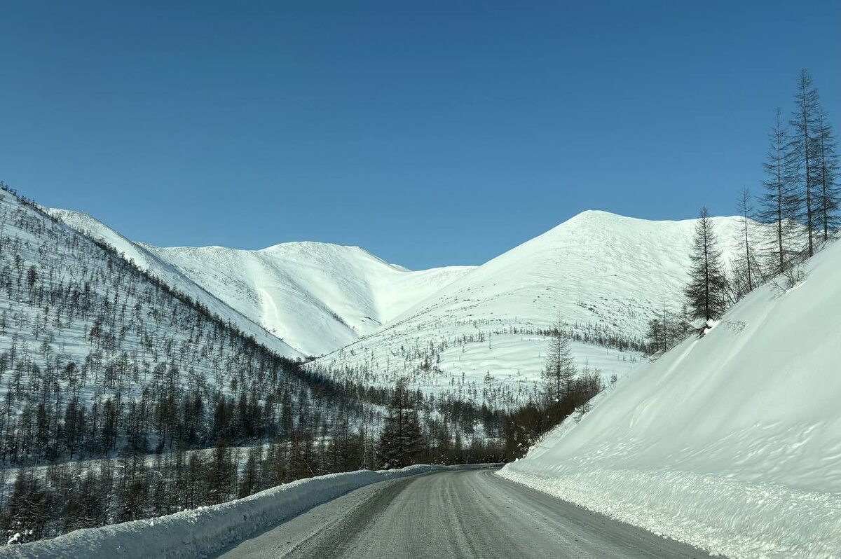 По Колыме. В поисках золота. 25 февраля. На самом деле, не совсем по Колыме. Трасса Колыма идёт до Магадана, куда нам надо было попасть, но не в этот день. В этот день мы сделали хитрый манёвр и повернули в сторону Усть-Омчага. Во-первых, дело у нас там было. А во-вторых, нам рассказывали, что этот участок дороги гораздо живописнее, чем прямая трасса до Магадана. Подтверждаю. Так и есть. Здесь перевал следует за перевалом. А географические названия радуют своим креативом. К сожалению, я ленюсь снимать эти прекрасные названия ручьёв и рек. Можно по карте посмотреть и восхититься. Как вам перевал Гаврюша? Про Кулу мы долго думали, откуда взялось такое название у реки и что оно значит. А на следующий день в музее (это я уже сильно вперёд забегаю) нам сказали, что Кулу значит – глубокая речка, а слово «Колыма» произошло от этого самого Кулу. И некоторые источники это подтверждают. Впрочем, другие источники пишут, что связь между этими словами не установлена. Впереди б
