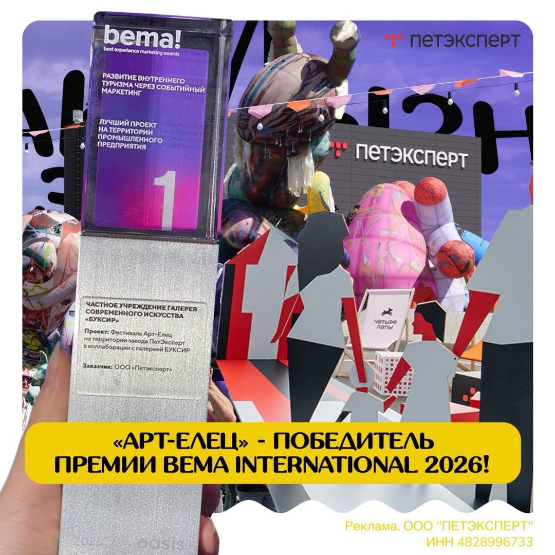 ! Фестиваль, который проходит на территории завода ПЕТЭКСПЕРТ (Елецкая площадка ОЭЗ ППТ «Липецк») в коллаборации с галереей БУКСИР, стал лучшим в номинации «Развитие внутреннего туризма через событийный маркетинг»! BEMA INTERNATIONAL 2026 — ключевое событие в сфере событийного маркетинга и коммуникаций. Почему это важно? Фестиваль превратил производственную площадку в Ельце в настоящее арт-пространство: 1️⃣ Работы художников со всей России; 2️⃣ Экскурсии по предприятию; 3️⃣ Новый взгляд на завод как на открытую культурную площадку. В 2025 их завод вошёл в туристические маршруты ТИЦ «Елецкий край», а фестиваль залетел в региональный событийный календарь 2026! Акулы Зообизнеса. Канал, который читает весь зоорынок.