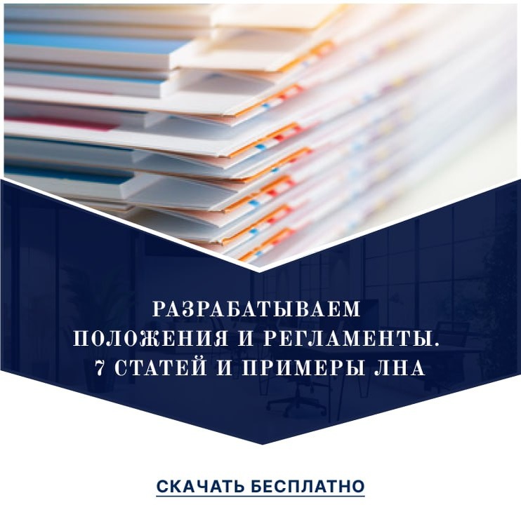 7 статей и примеры ЛНА БЕСПЛАТНАЯ подборка материалов! Из подборки вы узнаете: ✏️ Как регламентировать ведение управленческого учета на предприятии? ✏️ Как составить и использовать: - положение о производственном подразделении; - положение о движении запасов; - положение о системе нормирования труда? ✏️ Какие нюансы необходимо учитывать при внедрении платежного регламента? ✏️ Какие нормы необходимо включить в регламент по закрытию отчетного периода? ✏️ Какие ЛНА необходимы для предприятий, выполняющих ГОЗ? Подборка содержит примеры документов, которые можно использовать в работе. 📍Скачать подборку можно здесь