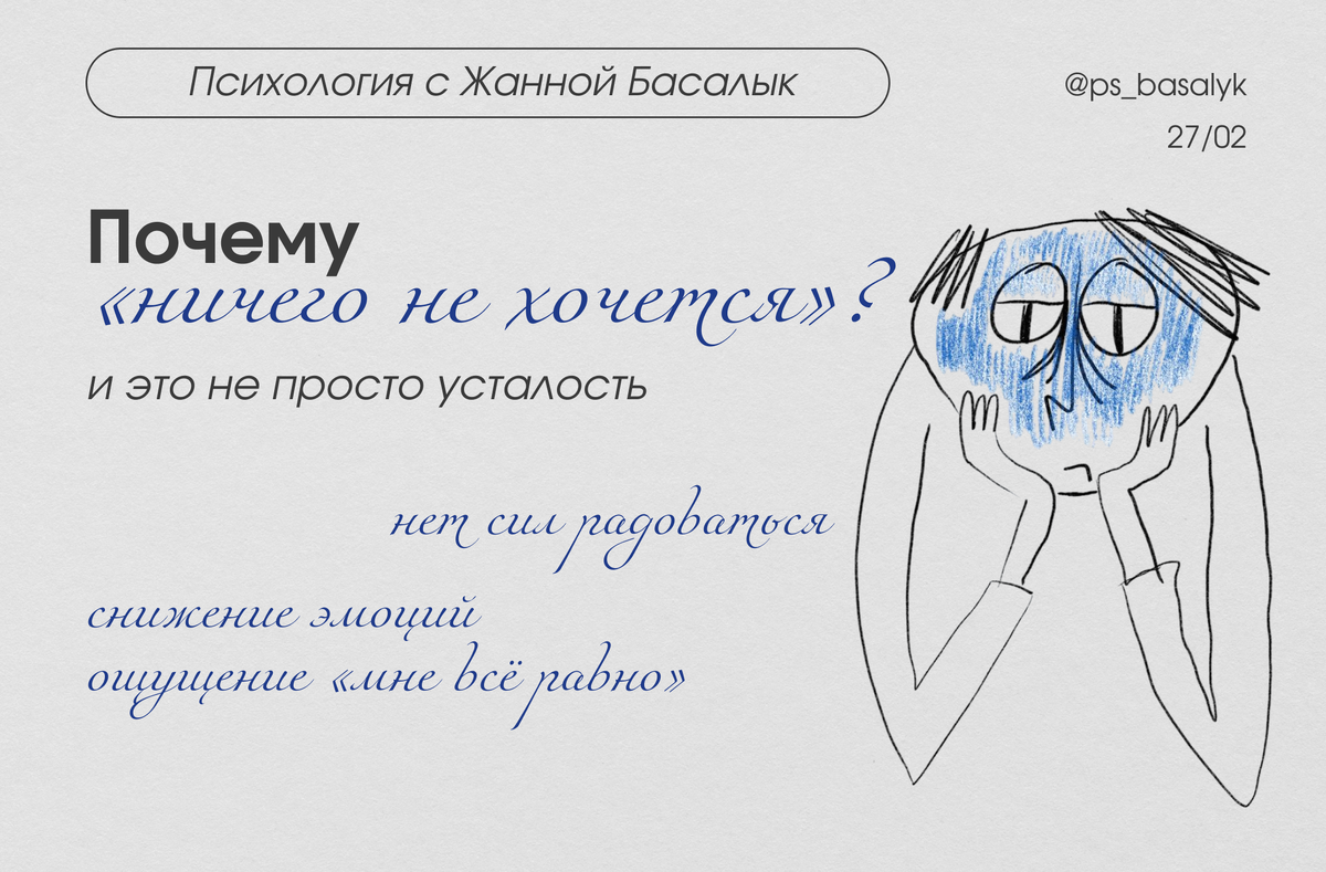 Потом — как будто «внутри всё выключили». Нервная система переходит из режима «бей или беги» в режим экономии, это защитная реакция. Апатия часто результат перегрузки, а не слабости. Многие удивляются: