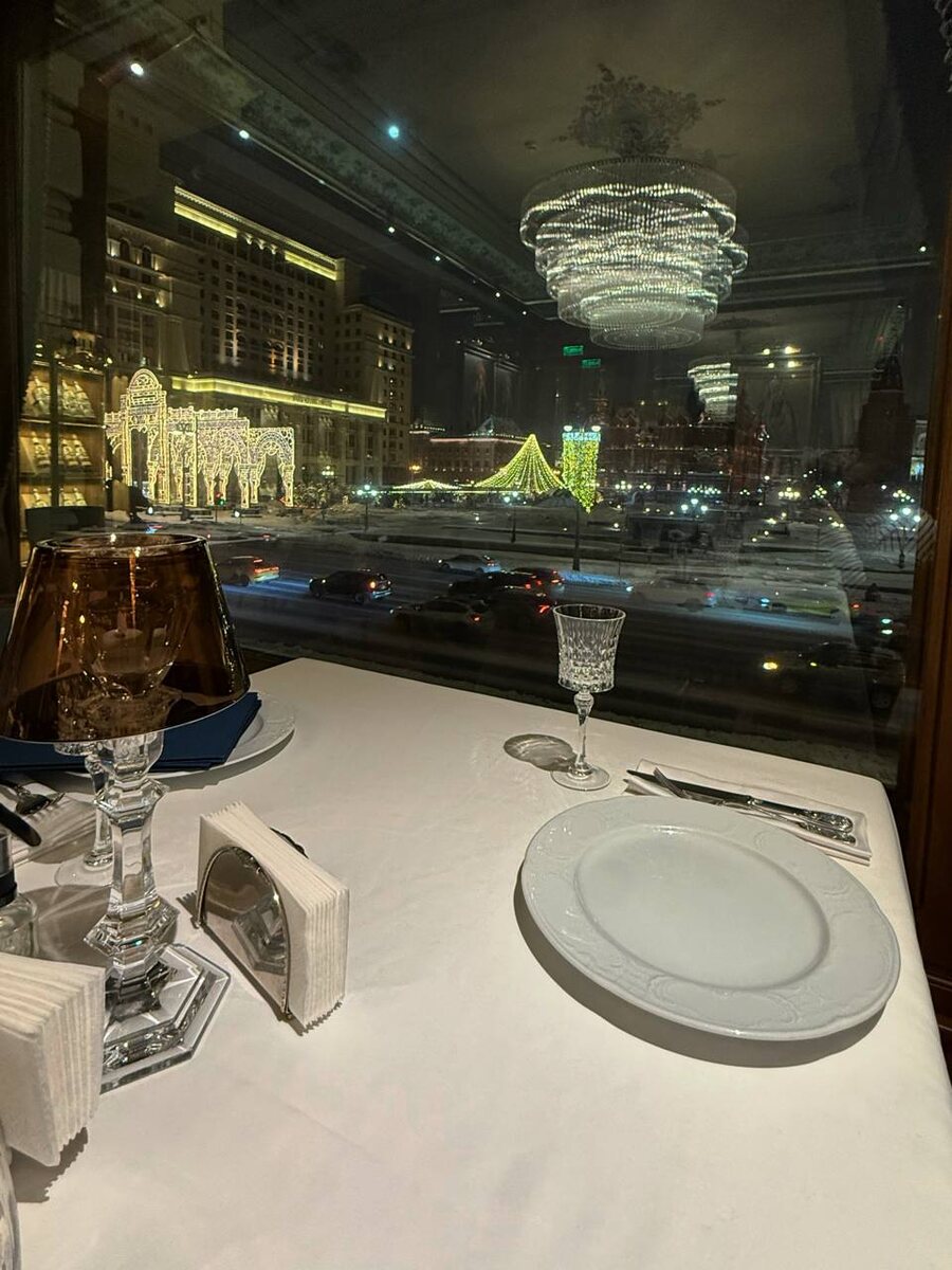 Первый пункт: ресторан «Белуга» (Моховая, 15/1, строение 1). Входит в группу «Рестораны Раппопорта». Шеф-повар Роман Чистов. Позиционируется как ресторан современной русской кухни. Ресторан находится в гостинице «Националь». А это объект культурного наследия федерального значения. Здание красивое - и фасад, и внутри: дерево, камень, ковровые дорожки, витражи, золото. Залы «Белуги» тоже исторические. Мы бронировали заранее и поехали туда сразу из аэропорта. В «Белуге» есть хайповый «Завтрак бурлака», к которому идёт килограмм черной икры. В 2024 году он стоил 77 тысяч рублей, в 2025 году и сейчас - 88 тысяч рублей. Выгодно, но мы пока не такие саратовские богачки 😅 Основное меню я посмотрела ещё в Саратове (спасибо всем ресторанам, которые публикую его на сайте), всё придумала, что хочу заказать. В итоге: заказала всё другое. Несмотря на то, что кухня русская, среди блюд есть много незнакомых слов. Например, жимчики - это костромское региональное блюдо - шарообразные драники из кар