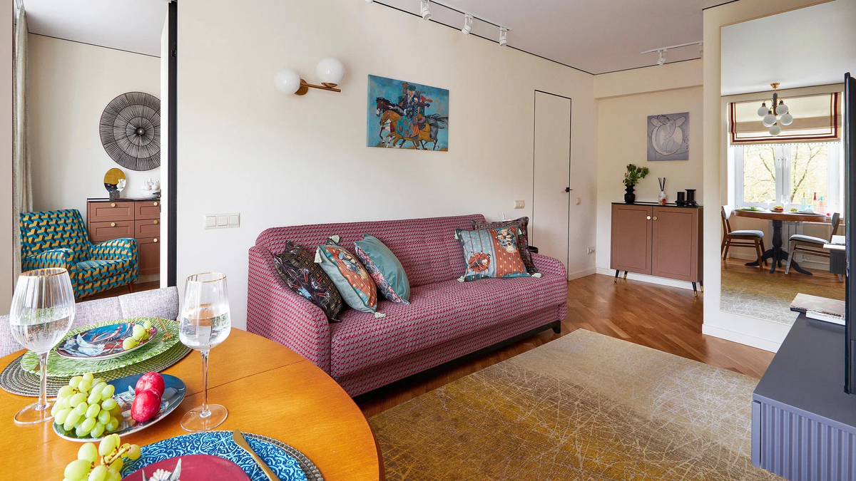 Осенью 2022 года она вместе с мужем купила квартиру в центре Москвы, на улице 6-я Кожуховская, и почти сразу приступила к ремонту. На тот момент волна паники на рынке схлынула, унеся с собой многие иностранные бренды. Но оказалось, что российские компании научились делать не хуже. Хозяйка квартиры поделилась с нами историей создания интерьера с использованием отечественных материалов и предметов меблировки.