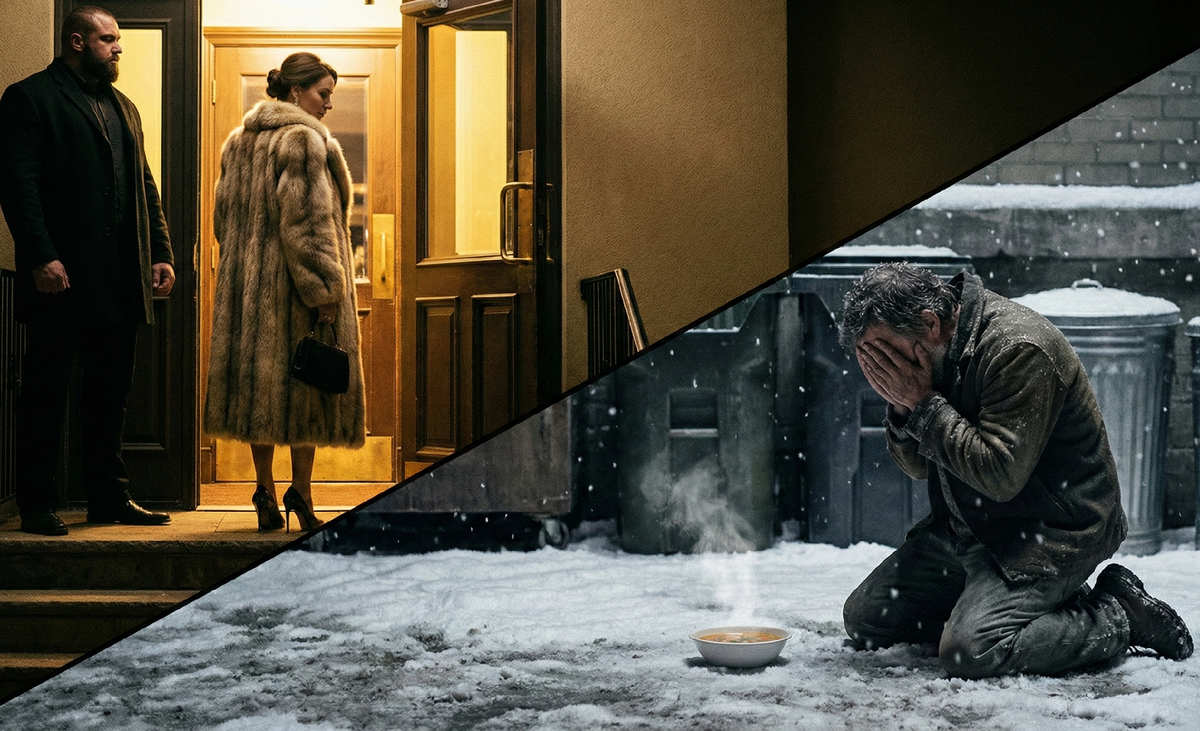 Игорь так и остался стоять на коленях в холодном снегу. Через минуту металлическая дверь ресторана снова открылась, и молчаливый охранник поставил прямо перед ним на чистый снег глубокую миску. От нее поднимался густой, невероятно ароматный пар настоящего домашнего супа, а рядом лежал ломоть свежайшего, еще теплого хлеба с хрустящей корочкой.