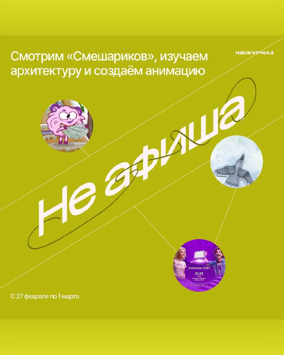• Вечеринка нулевых • Человек в закрытой комнате • Минус зима • Что не так со «Смешариками»? • Не хаос, а разное время: архитектурный слой Омска • Воркшоп по анимационной кукле-марионетке • Игра в «Го» • Мозгобойня: лёгкая 📰 Подпишись на «Не журнал» | Поддержать донатом