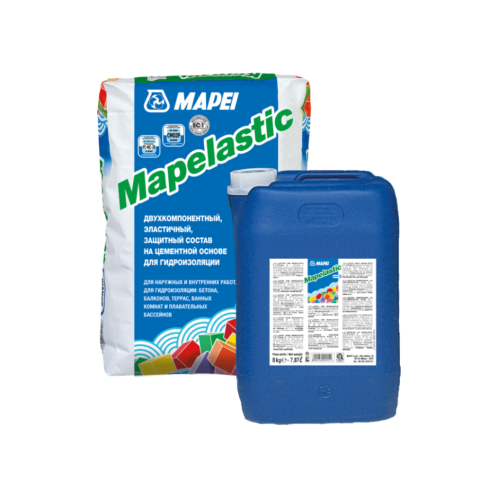 Благодаря высокому содержанию качественных синтетических смол, затвердевший слой Mapelastic остается постоянно эластичным при любых условиях окружающей среды и стойким к воздействию антиобледенительных солей, сульфатов, хлоридов и углекислого газа. Mapelastic отлично сцепляется с бетонными поверхностями, каменной кладкой, керамикой и мрамором, при условии, что они твердые и полностью очищены.