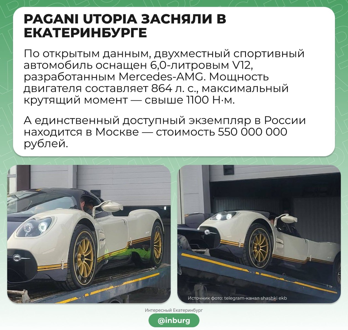 Итальянский гиперкар Pagani Utopia заметили в Екатеринбурге — стоимость такой модели на российском рынке может достигать почти полмиллиарда