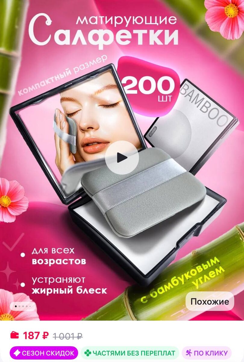 Mollie MAG Матирующие салфетки в футляре с зеркалом 200 штук