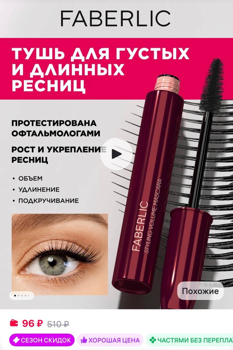 Faberlic Тушь для ресниц черная, веерный объем и удлинение
