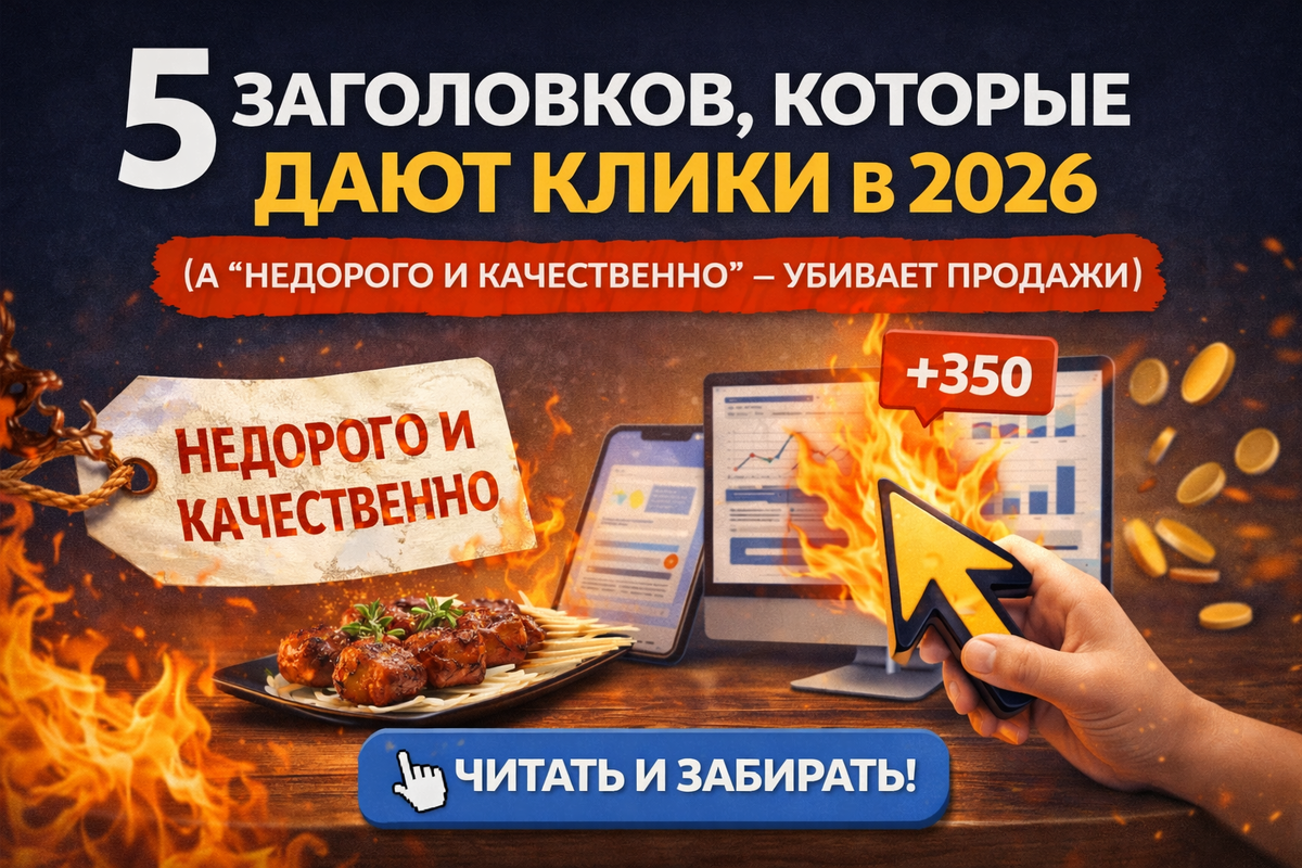 *Ремонт квартир. Автосервис. Маникюр. Стоматология. Окна. Все пишут одно и то же, а платят за клики — по-разному. Разбираемся, как зацепить внимание за 0.3 секунды.* Всем бобра! Алеквеб на кнопках. Иногда, ко мне обращаются люди с запросом помочь переделать рекламу в Директе, ибо у них она не работает(интересно почему...) А там все просто "ихние" заголовки: "Ремонт квартир под ключ. Делаем как себе. Звоните!" Или: "Стоматология. Лечение всех видов. Консультация бесплатно " И люди удивляются: "Почему контекстная реклама не работает? Почему сайт есть, а звонков нет?" Ответ прост: Потому что ваш заголовок — это пустой набор букав. В 2026 году внимание стало золотом. Даю вам 5 формул, которые реально приносят заявки и звонки на сайтах что делаю я. Запомните! Люди не покупают услуги, они покупают решение своих проблем. Ваш заголовок должен кричать: "Я знаю, что у тебя болит, и у меня есть таблетка!" ❌ Плохо: "Клининг квартир. Убираем быстро".
