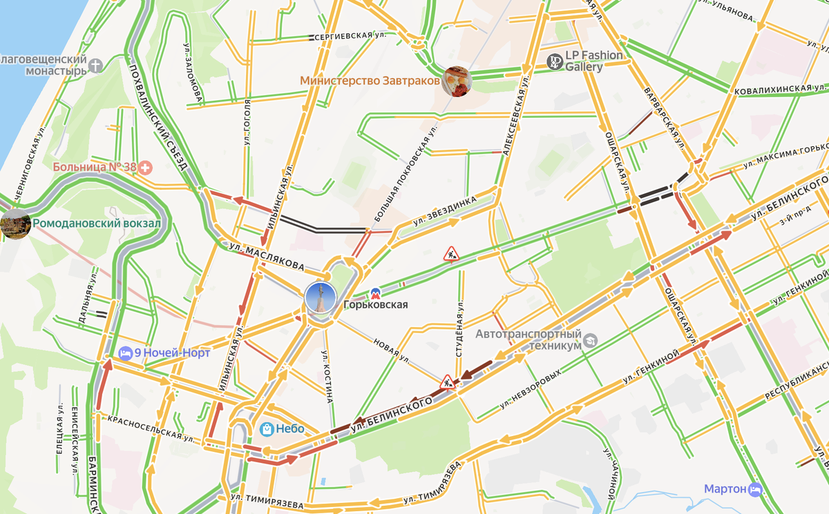 Утром 26 февраля дорожная обстановка в Нижнем Новгороде вновь оказалась напряжённой: сервис «Яндекс.Пробки» оценил загруженность магистралей в семь баллов. Заторы сформировались практически во всех районах города, осложнив утренний час пик. По данным онлайн-сервисов, наиболее проблемной зоной стал проспект Гагарина. Здесь образовалась самая протяжённая пробка: движение было затруднено на отрезке длиной более трёх километров — от улицы Ларина до транспортной развязки в районе деревни Ольгино. Этот участок традиционно входит в число самых загруженных транспортных коридоров города. Серьёзные затруднения движения зафиксированы и на других ключевых улицах нагорной части. В числе проблемных направлений — улицы Ванеева, Белинского, Надежды Сусловой, Тимирязева, Ильинская и Советская, где автомобили двигались с низкой скоростью и местами практически останавливались. Не легче ситуация сложилась и в заречной части Нижнего Новгорода. Заторы отмечены на улицах Героя Рябцева, Ярошенко, Федосеенко,