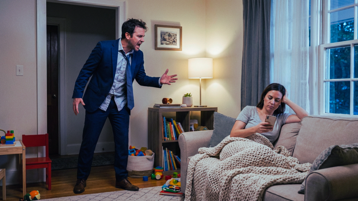 — Ты спишь до обеда, пока я на совещаниях, а потом говоришь, что устала?! От чего ты устала? От сериалов?! Я просил тебя забрать мой костюм из химчистки три дня назад! Тебе было лень пройти два квартала?! Я иду на встречу в мятом пиджаке из-за твоей безалаберности! Всё, ищи работу, хватит деградировать у меня на шее! — заявил муж жене, с грохотом бросая кожаный портфель на пол прихожей.