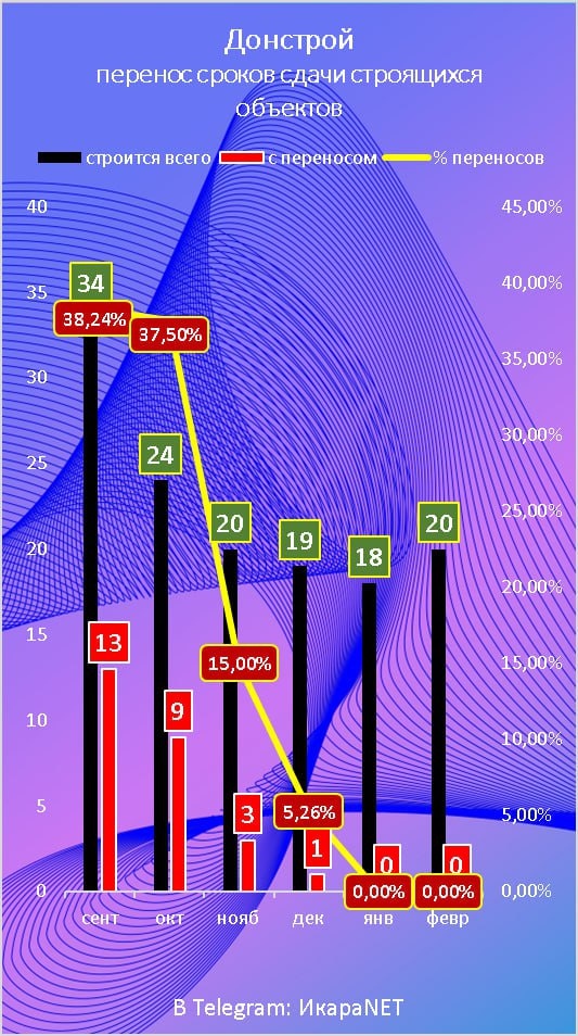 Донстрой — принадлежащий ВТБ. В своих отчетах на ЕИСЖС он больше не указывает переносы сроков сдачи своих строящихся объектов. Показатель упал до 0. При этом сдаёт по факту с задержками 62% своих домов. Вау! Крутотень! Захлёбываюсь слюной от восторга! Море оваций! Кудесник! 🛸 Неустойка & компенсация: да/нет 🏜 Форум ИкараNET