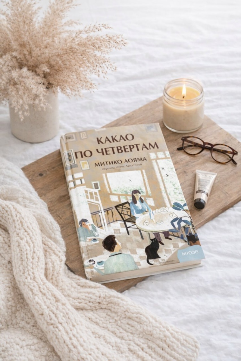 ☕ Иногда достаточно одного постоянного места, чтобы неделя не распадалась. 🍫 Какао по четвергам | Митико Аояма 📍О чём книга? Небольшое кафе Марбл в японском городе. По четвергам сюда приходит женщина за своим привычным какао — и от этой встречи, как от первого рукопожатия, расходятся дальше тихие истории людей, которые неожиданно оказываются связаны друг с другом. Коллеги. Случайные знакомые. Те, о ком мы обычно знаем лишь один-два факта. Это тот же самый Марбл, который позже откроется для читателей в «Понедельник в матча-кафе». Некоторые персонажи ещё встретятся - но уже в других обстоятельствах и с другими внутренними поворотами. 🧭Мои впечатления Где-то на середине книги я поймала себя на мысли, что читаю её как альбом знакомых лиц. Каждый герой сначала кажется случайным, но постепенно проступают невидимые ниточки, связывающие их через кафе. Это история без громких развязок. Но в ней есть что-то важное - ощущение, что из самых обычных будней может сложиться тёплый, почти