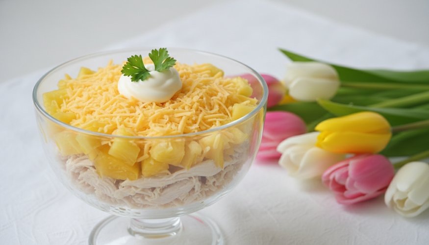 Здравствуйте, мои дорогие! С наступающим вас праздником весны! 🌷 Уже придумали, чем будете удивлять гостей или баловать себя 8 Марта? Оливье и Селедка под шубой — это, конечно, классика, но весной хочется чего-то более легкого, изысканного и нежного. Сегодня я поделюсь рецептом салата, который сметается со стола первым именно в женских компаниях. Он называется “Дамский каприз”. В нем идеально всё: сытная курочка, сладкий ананас (или виноград), пикантный сыр и чесночок. Вкус получается многогранным, свежим и очень праздничным. Нам понадобится: Собираем красоту: Салат получается очень сочным, легким и “девочковым”. Мужчины его тоже едят, но мы-то знаем, для кого он приготовлен! 😉 А как вы относитесь к ананасам в салатах? Любите сочетание сладкого и соленого или предпочитаете классику? Пишите в комментариях! 👇