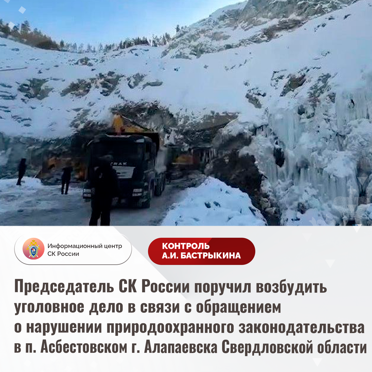 Председатель СК России поручил возбудить уголовное дело в связи с обращением о нарушении природоохранного законодательства в п. Асбестовском г. Алапаевска Свердловской области В социальной сети сообщается о нарушении природоохранного законодательства в поселке Асбестовском города Алапаевска Свердловской области. Вблизи населенного пункта функционирует предприятие по добыче хромовой руды на карьере, сотрудники которого складируют отходы на открытом рельефе местности. При выпадении осадков и порывах ветра вредные вещества попадают на территории домовладений граждан и в реку Водяновка, что приводит к загрязнению почв и водных ресурсов. Многочисленные обращения граждан в различные инстанции результатов не принесли. Указанная ситуация освещалась в СМИ и социальных сетях. В СУ СК России по Свердловской области по данному факту проводится процессуальная проверка. Председатель Следственного комитета Российской Федерации Александр Иванович Бастрыкин поручил руководителю СУ СК России по Свердло