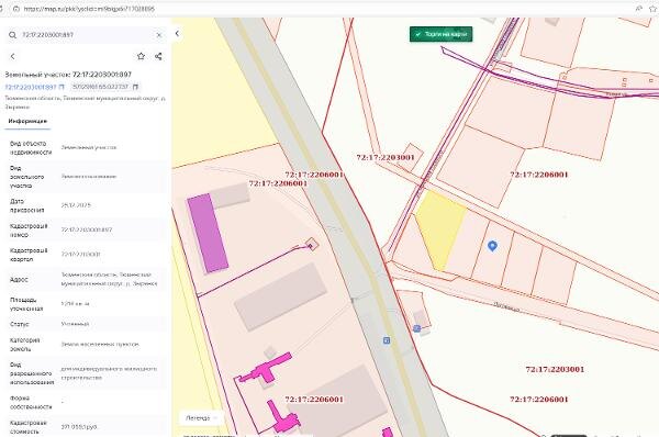 Зырянка; - кадастровый номер – 72:17:2203001:897; - площадь – 1 214 кв.м; - разрешенное использование – для индивидуального жилищного строительства; - категория земель – земли населенных пунктов; - территориальная зона – зона застройки индивидуальными жилыми домами (Ж1); Канал: Госземля Тюменская область Область: обл Тюменская Район: м.о. Тюменский Населенный пункт: д. Зырянка Локация: Смотреть на карте ВРИ: Для индивидуального жилищного строительства Кадастровый номер: 72:17:2203001:897 Кадастровая стоимость: - Вид сделки: Аренда Площадь: 1214 м² Начальная цена: 185529.00 руб. Дата завершения: 24.03.2026 Подробнее: ГИС ТОРГИ #госземля #земляотгосударства #земля #земельныйучасток #земельныеторги #торги #аукцион #арендаземли #аренда #тюменскаяобласть