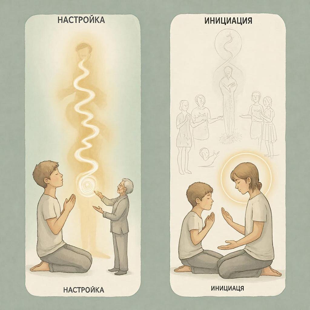 Кундалини Рейки — современная система энергетических практик, которая помогает работать с внутренними ресурсами, гармонизировать эмоции и поддерживать баланс. В этой статье разберём, как проходит настройка и инициация в Кундалини Рейки, чем они отличаются, и как выбрать мастера для обучения. Многие начинающие путают эти понятия, но разница есть: • Настройка — это процесс, когда мастер помогает ученику “подключиться” к энергетическому каналу Кундалини Рейки. Это похоже на настройку музыкального инструмента: важно, чтобы энергия проходила гармонично и безопасно. • Инициация — это обучение работе с энергией после настройки. Мастер делится техниками, объясняет, как применять практики в жизни. Перед тем как пройти посвящение, рекомендуем освоить базовую практику манифестации — она поможет лучше понять работу с чакрами" ( В большинстве школ процесс состоит из трёх этапов: 1. Подготовка • Очищающие дыхательные и визуализационные практики. • Упражнения для усиления энергетики и концентрации.
