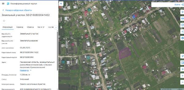 Название: Земельный участок из земель населенных пунктов с кадастровым номером 58:21:0280304:1422, разрешенное использование – для
