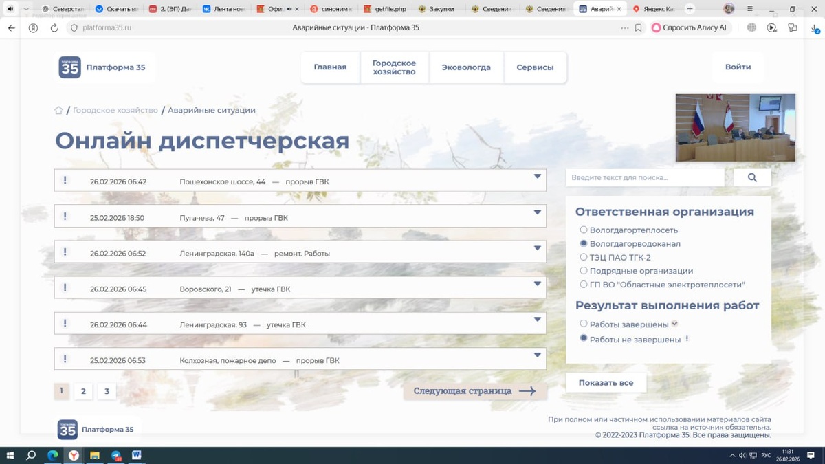 Согласно данным, опубликованным на сайте онлайн-диспетчерской, на Ленинградской, 140А проводят ремонтные работы: с 9.30 до 17.00. На время работ будет отключено водоснабжение ул. Щетинина,2а,Ленинградская,136,138,140,140а . Жильцов - 901чел, из них 300-дети. Подвоз воды по заявкам. У 93 дома на улице Ленинградской и на Воровского, 21 произошли утечки. Подачу ресурса не ограничили. А вот у жителей домов №44 и 46 на Пошехонском шоссе воду отключили. Здесь произошел прорыв. Накануне также случилась авария на Пугачева, 47. Устранять прорыв приступили сегодня в 9 утра. Согласно информации, размещённой на сайте онлайн-диспетчерской, ресурса не будет до 21:00 по следующим адресам: ул. Пугачева 43,45,47,49, Судоремонтная 5,7к1, Машиностроительная 19. Telegram | ВКонтакте | Rutube | Одноклассники | Дзен | 35MEDIA в MAX