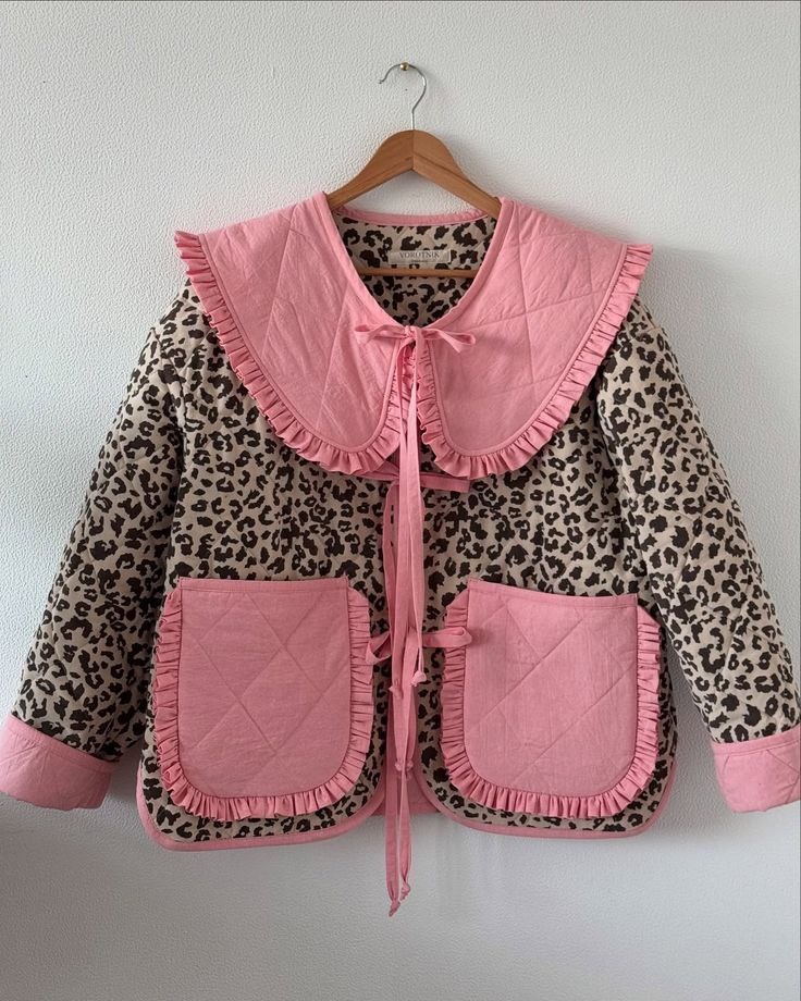 И нашла вот такие пины, и теперь очень хочется сшить для малышки, но такой яркой ткани не видела, может вы подскажите? А еще я давно сшила телогрейку из вельвета для сына, а теперь она как раз дочке, думаю, может убрать старые карманы и сшить новые с рюшами и воротник?