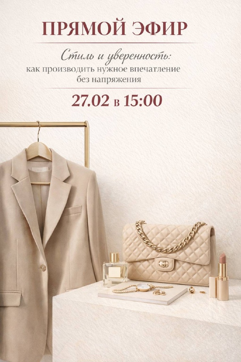 ! Сообщаю вам дату нашего с психологом эфира для вас Уже в эту пятницу 27.02 в 15:00 мы выходим в совместный эфир с психологом. Ссылку на эфир размещу здесь за 15 мин до эфира Мне очень откликается её глубокий подход, про внутреннюю опору, про состояние, из которого женщина говорит, двигается, выбирает себя. И это как раз то, о чём я всегда говорю о стиле. Потому что одежда, это не про вещи, это про то, из какого состояния вы входите в пространство. На эфире разберём две важные темы: 1️⃣ Практические приёмы уверенности в себе. Как произвести нужное впечатление в любой компании. Не играть роль, а чувствовать себя спокойно и уверенно. Мы соединим внутреннее и внешнее. Потому что одно без другого не работает. 2️⃣ С чего начать строить свой стиль. Дам конкретные практические шаги, которые можно начать применять сразу. Эфир можно будет посмотреть в записи. Но если придёте онлайн- у вас будет возможность задать свой вопрос и получить мини-разбор. До встречи в пятницу в 15:00 ❤️