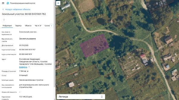 Название: Земельный участок с кадастровым номером 66:68:0401001:762, площадью 1144,0 кв.м., разрешенное использование: для индивидуального