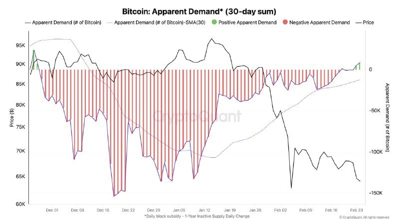 🪙 Чистый спотовый спрос на Bitcoin впервые с ноября 2025 года в положительную зону.