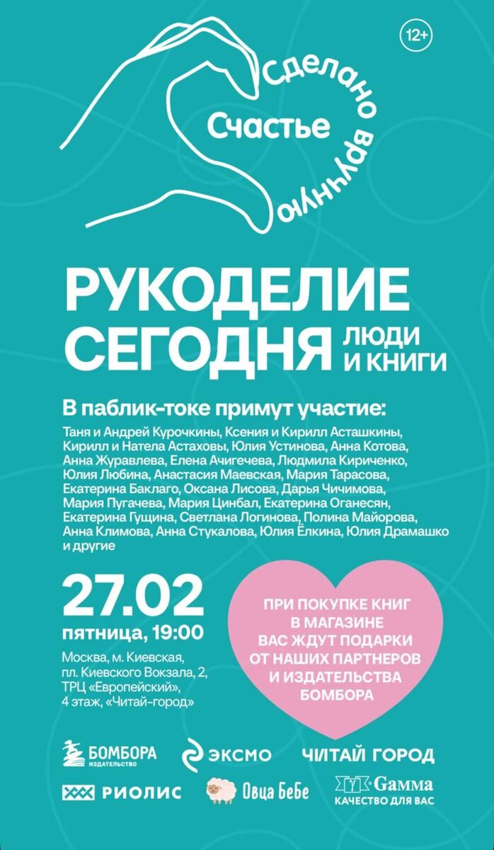 » ✨ Проведите вечер в компании единомышленников , ваших любимых вязальных блогеров и вдохновения. Ждем вас на главном событии дня: 🕕 18:00 — Презентация Ксюши Асташкиной. Узнаем все первыми! 🔝 19:00 — Мощный паблик-ток. Обсуждаем важное, делимся опытом и заряжаемся энергией. Вход свободный, настроение — на максимум. До встречи завтра! 👋 Подробнее о встрече https://bombora.ru/events/182579/