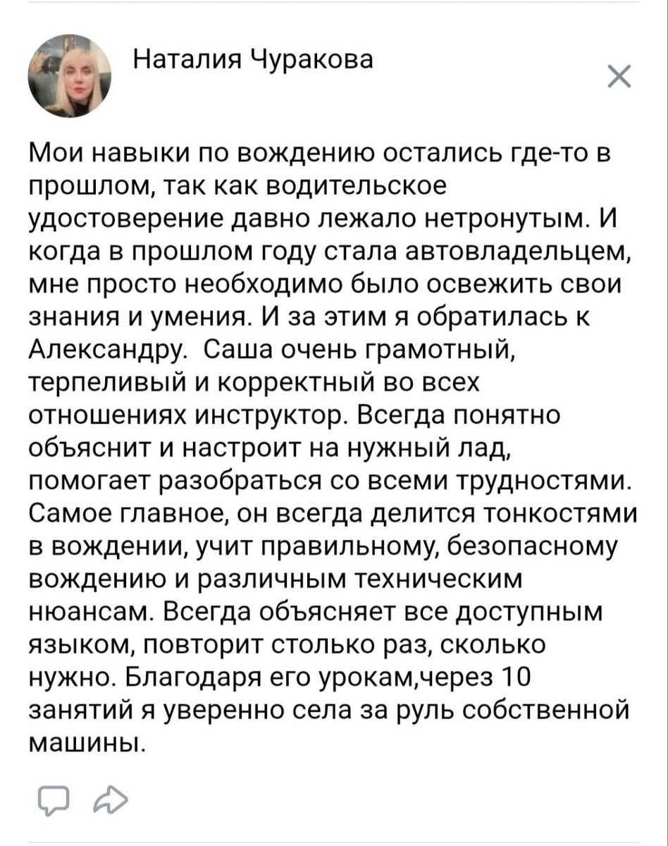 ! 😊 Очень приятно, что Вы отметили мою работу. Главная награда для инструктора — видеть, как ученик всего через несколько занятий уверенно садится за руль собственного автомобиля. Ваш случай — отличный пример того, что даже с большим перерывом в практике можно быстро восстановить и даже преумножить навыки вождения. 👍 Я всегда стараюсь не просто научить сдавать экзамены, а привить любовь к безопасному и осознанному вождению, объяснить те самые «мелочи» и нюансы, которые делают поездки комфортными. Рад, что мой подход и терпение помогли Вам обрести уверенность! 😎