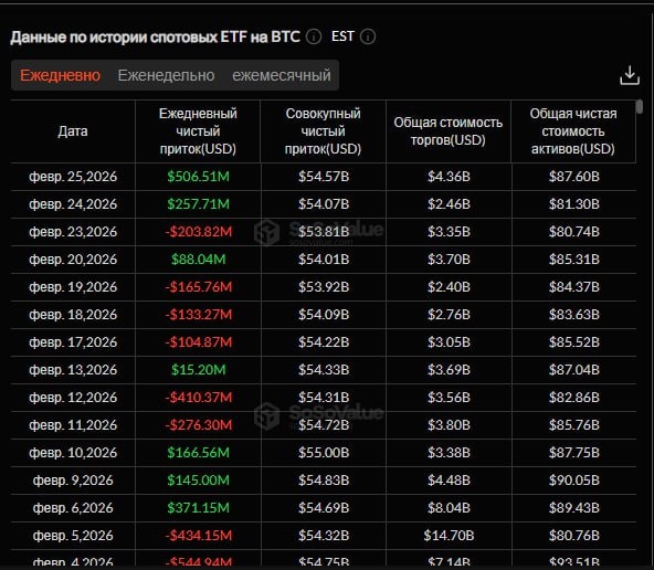 πΈ25 ΡΠ΅Π²ΡΠ°Π»Ρ Π°ΠΌΠ΅ΡΠΈΠΊΠ°Π½ΡΠΊΠΈΠ΅ Π±ΠΈΡΠΊΠΎΠΈΠ½-ETF Π·Π°ΡΠΈΠΊΡΠΈΡΠΎΠ²Π°Π»ΠΈ ΠΎΠ±ΡΠΈΠΉ ΡΠΈΡΡΡΠΉ ΠΏΡΠΈΡΠΎΠΊ ΡΡΠ΅Π΄ΡΡΠ² Π² ΡΠ°Π·ΠΌΠ΅ΡΠ΅ $507 ΠΌΠ»Π½