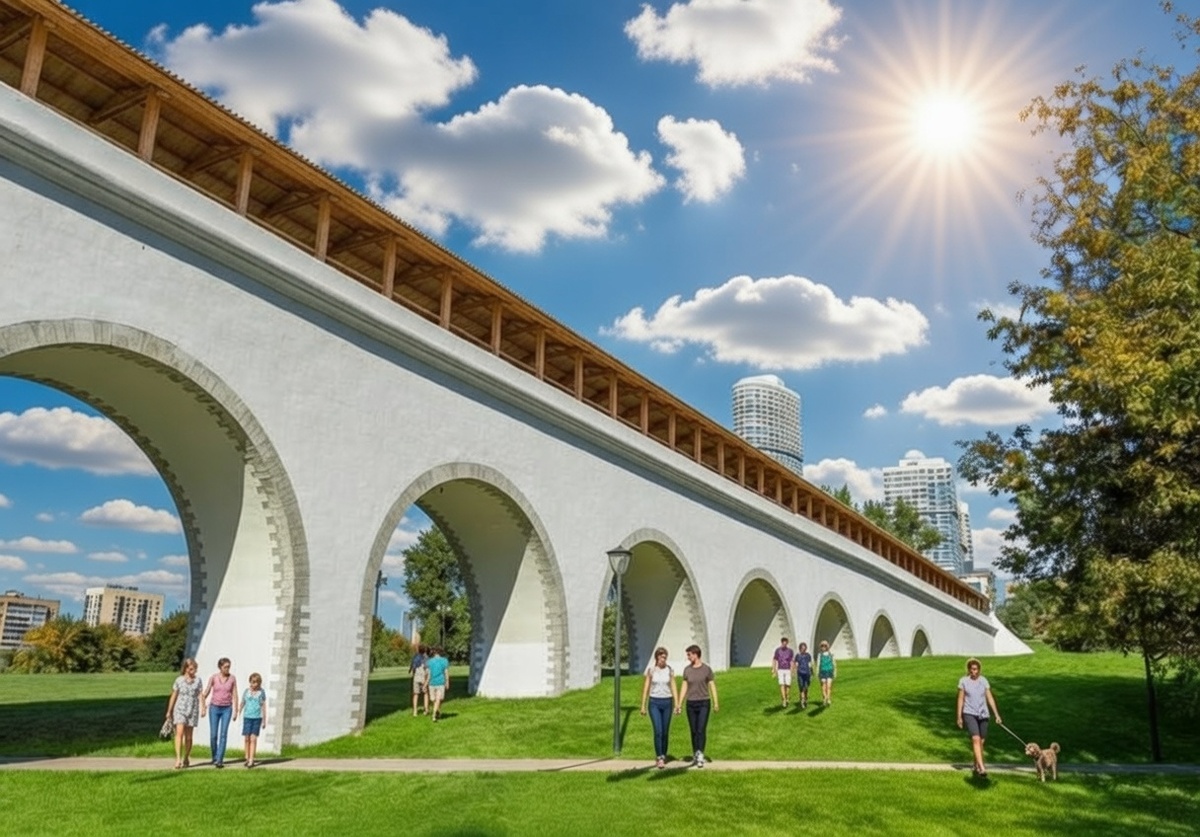 Ростокинский акведук в Москве — выдающийся памятник русской инженерной мысли конца XVIII века. Это единственное сохранившееся сооружение из системы Мытищинского водопровода, который стал первым в истории города централизованным водопроводом. ****************************************** Строительство Мытищинского водопровода началось в 1779 году по указу императрицы Екатерины II. Причиной послужила острая нехватка качественной питьевой воды в Москве, усугубившаяся эпидемией чумы 1771 года. Ключевую роль в проекте сыграл инженер Фридрих Вильгельм Бауэр. Он предложил брать воду из подземных источников в районе села Большие Мытищи и доставлять её в Москву самотечным способом — по каналу с небольшим уклоном. Акведук через долину реки Яузы в районе села Ростокино возводился с 1783 по 1804 год. На момент постройки это было крупнейшее каменное сооружение в России. Ростокинский акведук представляет собой арочную конструкцию: Конструкция спроектирована так, чтобы выдерживать вес водного канала и о