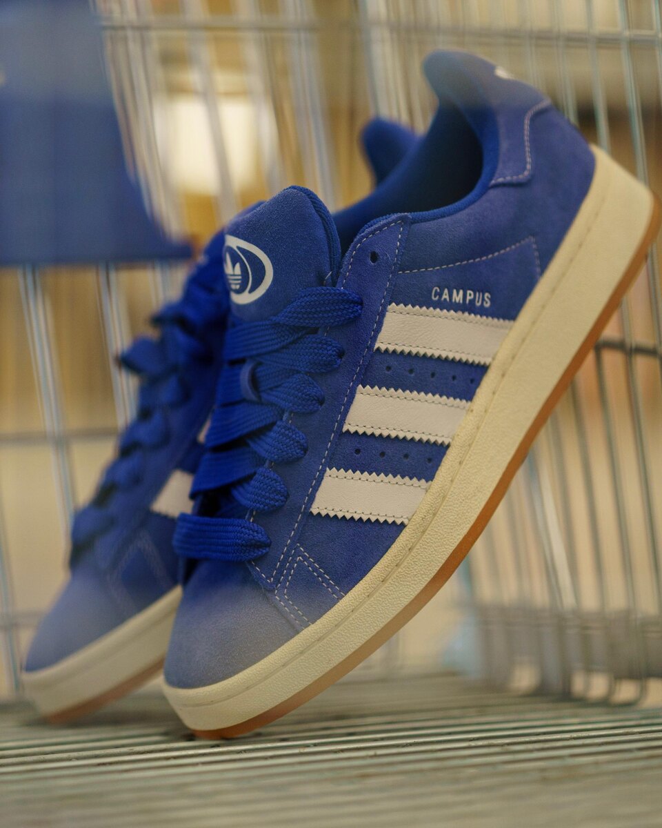 Обновлённая версия классической модели сохраняет узнаваемые линии Campus, но добавляет более массивные пропорции и выразительный объём. Мягкая замша в насыщенном синем оттенке, контрастные три полоски и gum подошва создают тот самый баланс между ретро и актуальностью.