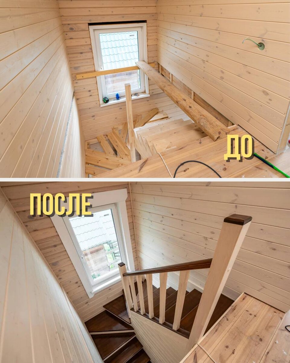 Отвечаю честно: стопроцентную гарантию того, что лестница никогда не будет издавать ни одного звука, не даст никто. Но мы всегда стремимся минимизировать эти звуки. На примере этой лестницы хорошо видно, что она не так проста, как кажется на первый взгляд. 👆🏻 Здесь сложное подлестничное пространство, большое количество элементов — всё это создаёт множество потенциальных точек, где могут появляться скрипы. Именно поэтому важна технология. Лестница собирается дважды. Сначала — всё подгоняется и проверяется в черновом варианте. Затем конструкция полностью разбирается, все детали шлифуются и прокрашиваются со всех сторон и только после этого лестница собирается в чистовом варианте. Здесь требуется время, внимание и точность в деталях. Будет интересно спустя время узнать у заказчиков, как лестница ведёт себя в эксплуатации!)