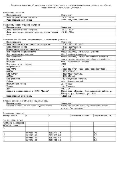 Канал: Госземля Иркутская область Область: обл Иркутская Иркутская область Район: Нижнеудинский район Населенный пункт: д. Муксут, ул. Таежная, уч. 11А Локация: Смотреть на карте ВРИ: Для ведения личного подсобного хозяйства (приусадебный земельный участок) Кадастровый номер: 38:11:101010:142 Кадастровая стоимость: - Вид сделки: Аренда Площадь: 2880 м² Начальная цена: - руб. Дата завершения: 26.03.2026 Подробнее: ГИС ТОРГИ #госземля #земляотгосударства #земля #земельныйучасток #земельныеторги #торги #аукцион #арендаземли #аренда #иркутскаяобласть