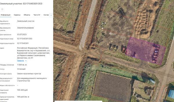 Название: Земельный участок с кадастровым номером: 02:17:040301:353, категория земель: Земли населенных пунктов, площадью 1554 кв.м
