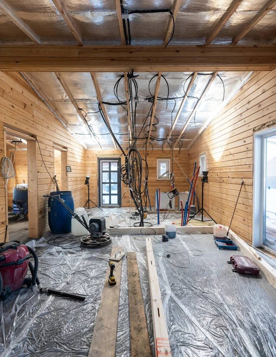 Перед вами дом площадью 80 кв. м по проекту «Анна» в Пушкинском районе. Сейчас на этом объекте мы как раз занимаемся устройством пола. И это не только сама стяжка, но и прокладка инженерных коммуникаций, подготовка основания и только потом — стяжка как финишный базовый слой. Для заказчика это один из самых важных этапов: технически сложный, трудоёмкий и, конечно, финансово затратный. Но в его грамотной реализации закладывается комфорт дома на годы вперёд — тепло, надёжность и стабильная работа всех систем.