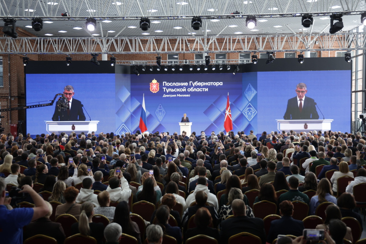 В атриуме Тульского кремля губернатор Дмитрий Миляев начал ежегодное послание к жителям региона и депутатам областной Думы. В зале собрались больше тысячи человек — сенаторы, депутаты Госдумы, члены правительства, участники специальной военной операции, представители молодежного парламента, СМИ и общественных организаций. Открывая послание, губернатор подчеркнул, что смысл любого плана или стратегии — в реальных изменениях для людей. Ориентиром для работы региона служат национальные цели, поставленные президентом, каждая из которых направлена на благополучие граждан. «Президент сказал: "Все национальные цели построены вокруг человека, а семья с детьми, ее благополучие находится в центре всех решений и национальных проектов России, что напрямую влияет на качество жизни в стране". Здоровье наших жителей, возможности для самореализации, благоприятные условия для создания семей и воспитания детей, забота о старшем поколении — это и есть наши ключевые приоритеты», — заявил Миляев. Трансляци