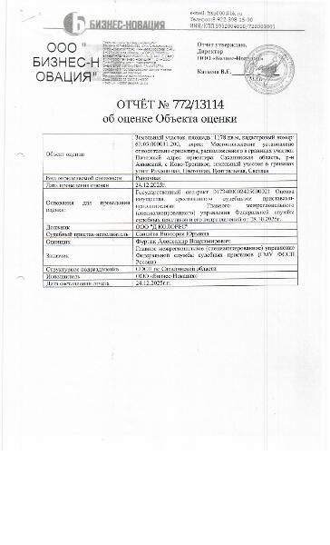Название: Земельный участок, площадью 1178 кв.м., к/н 65:05:0000031:200