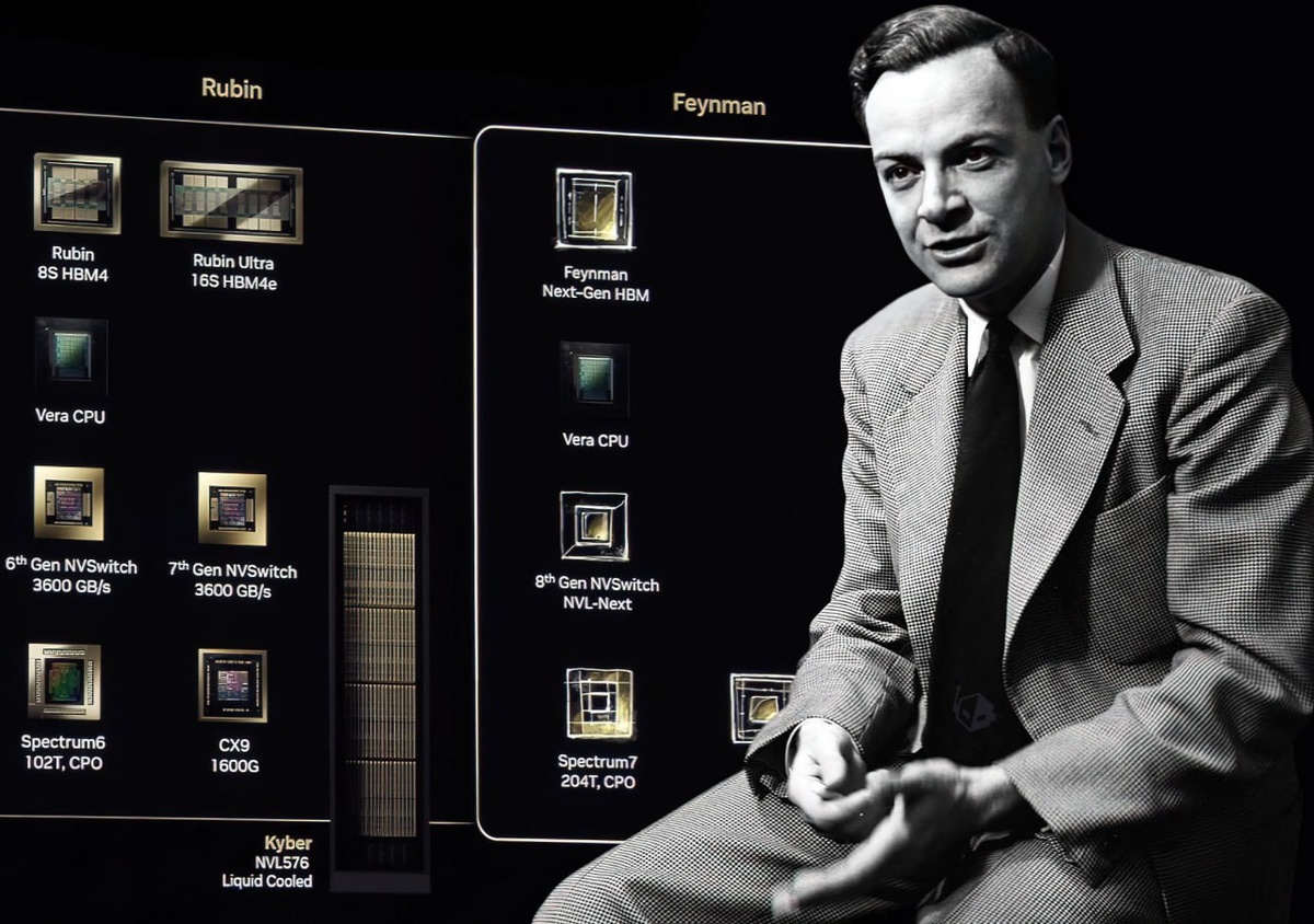 Дженсен Хуанг готовит сенсацию для GTC 2026: первые в мире процессоры на техпроцессе TSMC A16 (1,6 нм), архитектура Feynman сменит Vera Rubin и задаст новые стандарты ИИ-вычислений: • NVIDIA станет первым клиентом A16 с Super Power Rail для сложных схем питания • возможная интеграция LPU-блоков Groq для снижения задержек инференса • гибридная компоновка GPU+LPU на одной подложке в стиле AMD X3D • массовое производство в 2028, поставки клиентам — 2029–2030 годы • мобильные SoC перейдут на A16 позже из-за переработки архитектур Feynman закрепит лидерство NVIDIA в ИИ-инфраструктуре, где каждый нанометр решает вопросы энергоэффективности при росте TDP до 4+ кВт. Уложится ли NVIDIA с Feynman до 2028 или TSMC сорвёт сроки A16? 🤷♂️ 🌐 Наши каналы 🗺 #Nvidiа