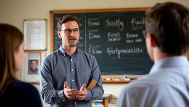 Дмитрий откинулся на спинку стула и задумчиво посмотрел в окно. За стеклом октябрьский ветер гнал жёлтые листья по школьному двору — там, на скамейке у старого тополя, как раз сидели два подростка. Настя что-то объясняла, активно жестикулируя, Артём кивал, записывая в тетрадь.