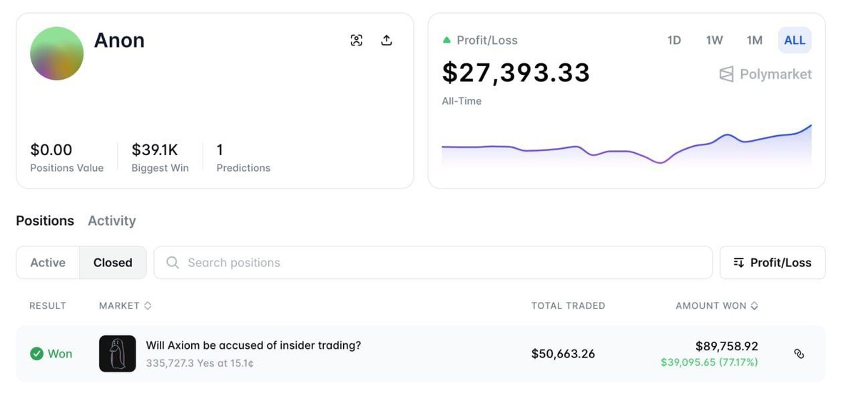 πΈΠΠ½ΠΎΠ½ΠΈΠΌΠ½ΡΠΉ ΡΡΠ΅ΠΉΠ΄Π΅Ρ ΡΠΎΠ·Π΄Π°Π» ΠΊΠΎΡΠ΅Π»ΡΠΊ ΠΈ ΡΠ΄Π΅Π»Π°Π» ΡΡΠ°Π²ΠΊΡ $50,7 ΡΡΡ. Π½Π° ΡΠΎ, ΡΡΠΎ Axiom Π±ΡΠ΄Π΅Ρ ΠΎΠ±Π²ΠΈΠ½ΡΠ½ Π±Π»ΠΎΠΊΡΠ΅ΠΉΠ½-Π΄Π΅ΡΠ΅ΠΊΡΠΈΠ²ΠΎΠΌ Zachxbt Π² ΠΈΠ½ΡΠ°ΠΉΠ΄Π΅ΡΡΠΊΠΎΠΉ ΡΠΎΡΠ³ΠΎΠ²Π»Π΅ β ΠΏΡΠΈ Π²Π΅ΡΠΎΡΡΠ½ΠΎΡΡΠΈ Π²ΡΠ΅Π³ΠΎ 15,1%. ΠΡΠΎ Π²ΡΠ·Π²Π°Π»ΠΎ ΡΠΏΠ΅ΠΊΡΠ»ΡΡΠΈΠΈ ΠΎ Π²ΠΎΠ·ΠΌΠΎΠΆΠ½ΠΎΠΉ ΠΈΠ½ΡΠ°ΠΉΠ΄Π΅ΡΡΠΊΠΎΠΉ ΠΈΠ½ΡΠΎΡΠΌΠ°ΡΠΈΠΈ, ΠΈΠ·-Π·Π° ΡΠ΅Π³ΠΎ ΠΌΠ½ΠΎΠ³ΠΈΠ΅ ΡΡΠ΅ΠΉΠ΄Π΅ΡΡ ΠΏΠΎΡΠ»Π΅Π΄ΠΎΠ²Π°Π»ΠΈ Π·Π° Π΅Π³ΠΎ ΡΡΠ°Π²ΠΊΠΎΠΉ ΠΈ ΠΏΠΎΠ΄Π½ΡΠ»ΠΈ ΡΠ°Π½ΡΡ Axiom Π΄Π°ΠΆΠ΅ Π²ΡΡΠ΅, ΡΠ΅ΠΌ Ρ Meteora. ΠΠ°ΡΠ΅ΠΌ ΡΡΠ΅ΠΉΠ΄Π΅Ρ Π·Π°ΠΊΡΡΠ» ΡΠ²ΠΎΡ ΠΏΠΎΠ·ΠΈΡΠΈΡ ΠΈ Π·Π°ΡΠ°Π±ΠΎΡΠ°Π» $39 ΡΡΡ. Π·Π° ΠΎΠ΄ΠΈΠ½ Π΄Π΅Π½Ρ.